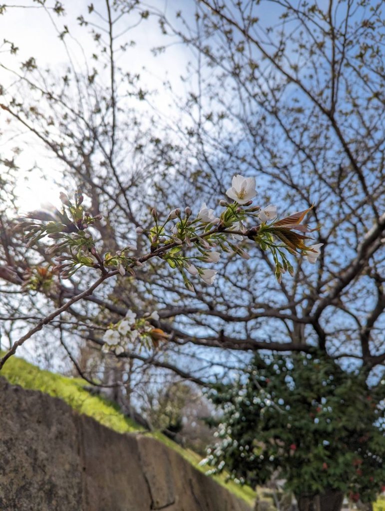 3月31日のお城の近く。桜が咲き始めていました。